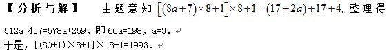 5.如图18-2中的短除式所示,一个自然数被8除余1,所得的商被8除余1,再把第二次所得的商被8除后余7,最后得到的一个商是 .图18-3中的短除式表明:这个自然数被17除余4,所得的商被17除余15,最后得到的一个商是 的2倍。求这个自然数。