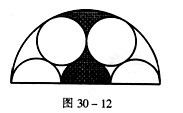 6.如图30-12,若图中的圆和半圆都两两相切,两个小圆和三个半圆的半径长都是1.求阴影部分的面积。