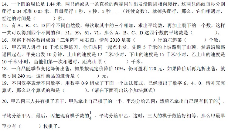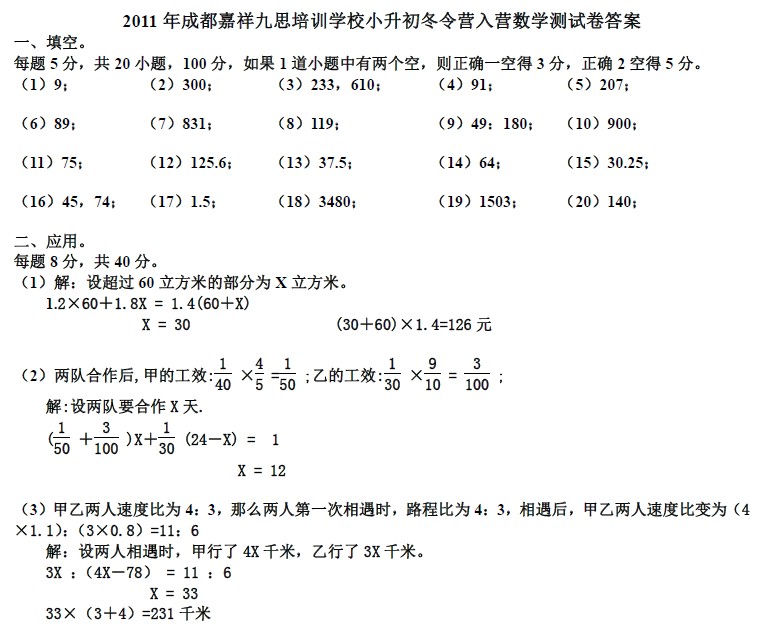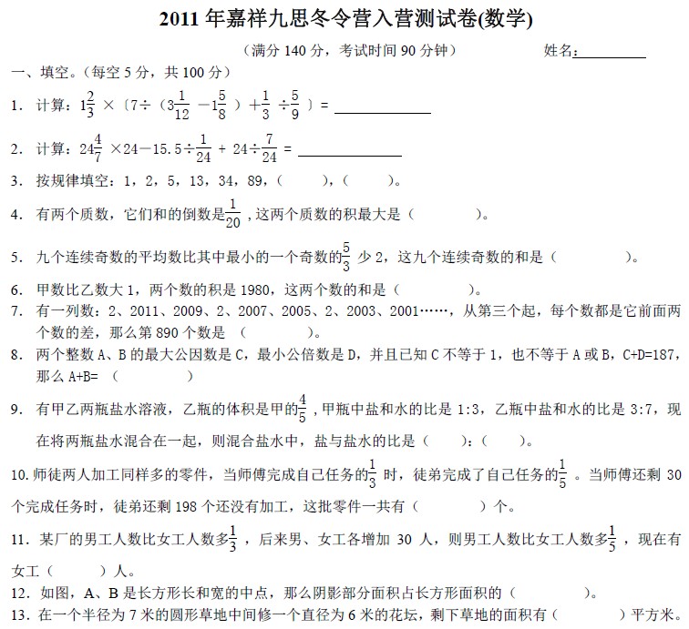 以下是成都奥数网小编收集整理的2011嘉祥九思冬令营数学入营测试卷与答案详细内容,满分140分,考试时间90分钟,供大家下载。