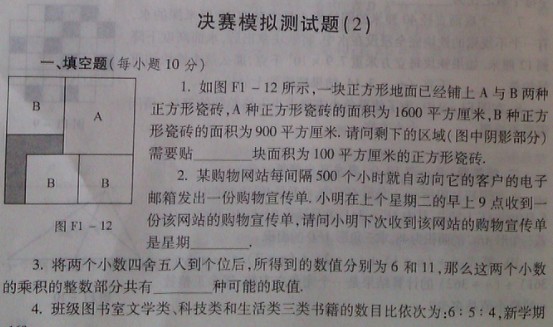成都奥数网2月18日 2013第十八届华罗庚金杯少年数学邀请赛(华杯赛)参赛对象为所有一年级到初中一年级的学生,均可自愿报名参加第十八届华杯赛。(2012-2013第十八届华杯赛12月18日开始报名)华杯赛获奖证书在成都小升初学校认可度是最高的证书之一,成都家长口中的“双一”,其中一个就是华杯赛一等奖。以下是2013年第十八届华杯赛小高年级组决赛模拟试题二,供大家学习,祝大家在华杯赛考试中能取得好成绩。