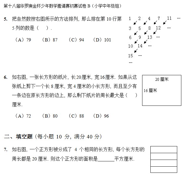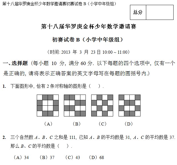 | 第十八届华罗庚金杯少年数学邀请赛初赛试卷B(小学中年级组) |