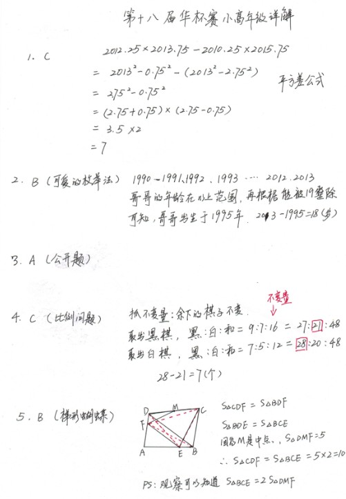 第18届华杯赛初赛小高年级组A卷详解