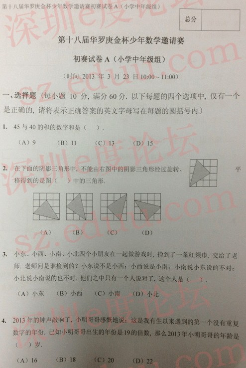 | 第十八届华罗庚金杯少年数学邀请赛初赛试卷A(小学中年级组) |