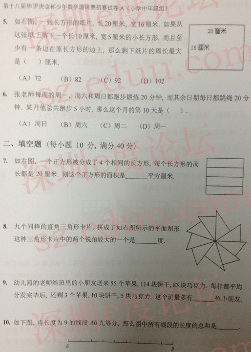 成都奥数网3月23日 第十八届华罗庚金杯数学邀请赛初赛今天(3月23日)10:00-11:30在成都市举行,本次比赛分为四个考点。全国初赛分为ABC卷,成都地区考的是B卷(相关阅读:第18届华杯赛初赛小高年级组B卷真题),以下是第十八届华罗庚金杯少年数学邀请赛初赛试卷A(小学中年级组-三四年级),供大家下载。