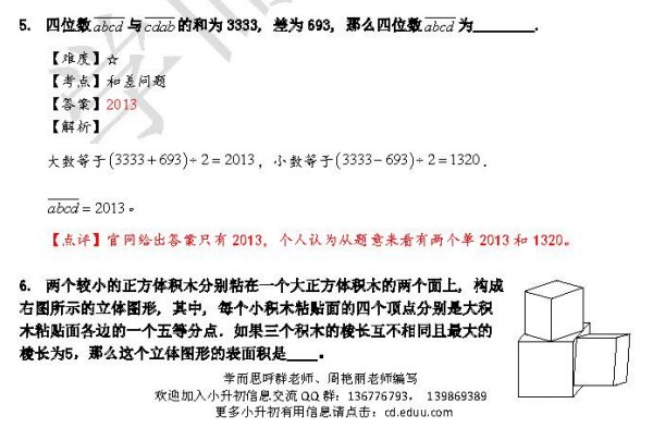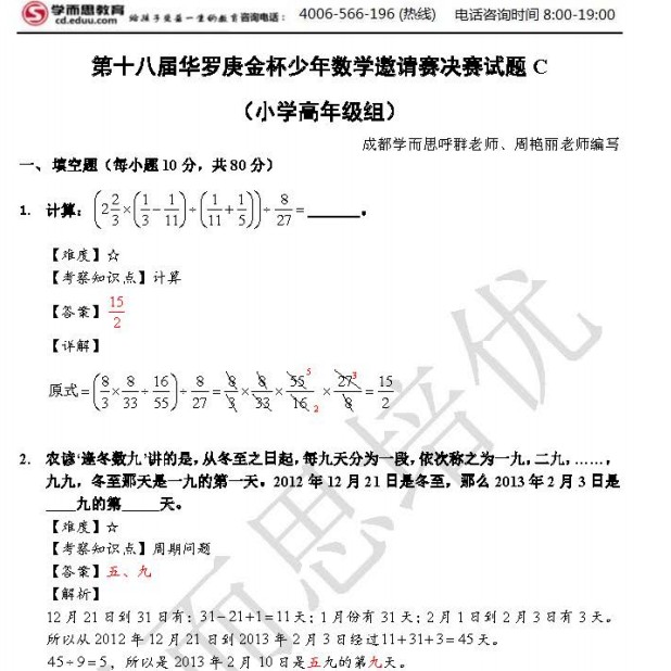 2013第十八届华杯赛决赛小高年级组C卷详解