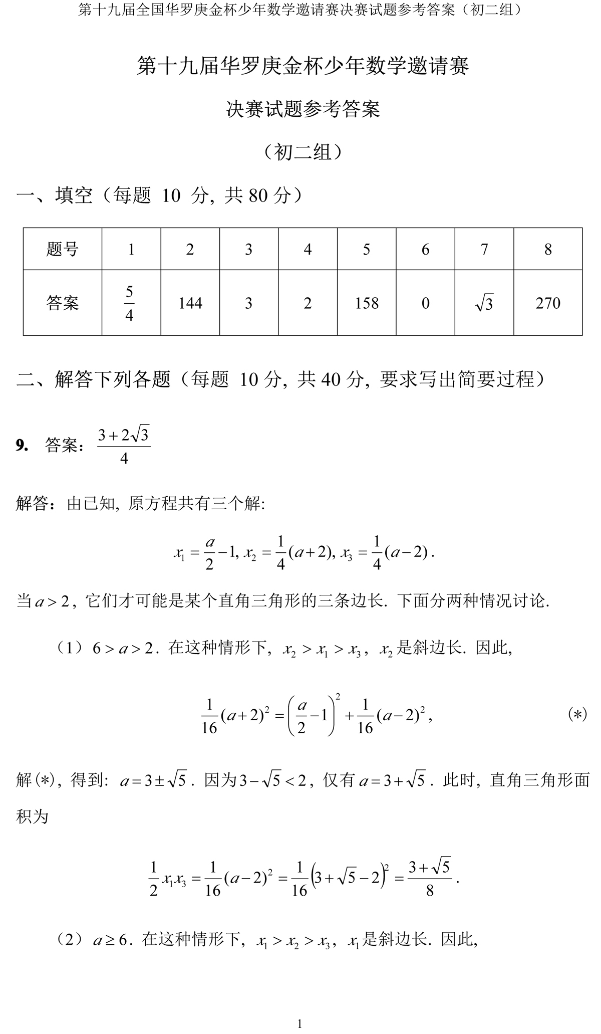 第19届华杯赛决赛成都赛区试题及答案(初二组)(2)