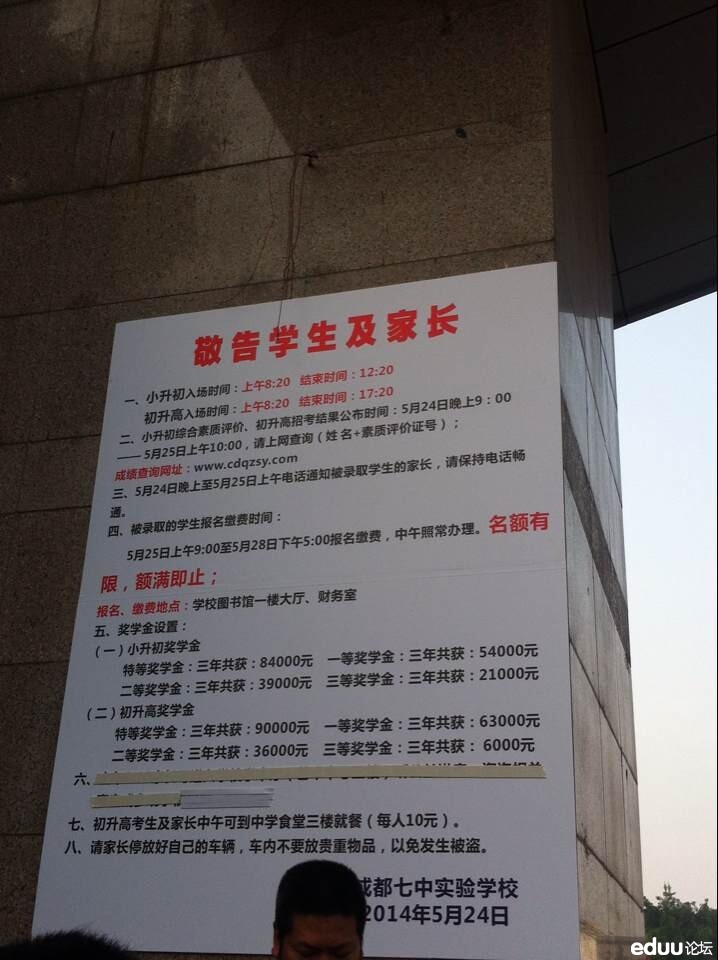 【查看原帖并参与讨论:2014成都小升初本地生考试“七中实验学校”现场直播】