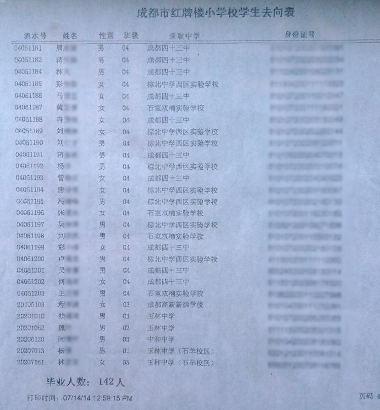 【查看论坛原帖并参与讨论:武侯区【红牌楼小学】2014年毕业生去向统计】
