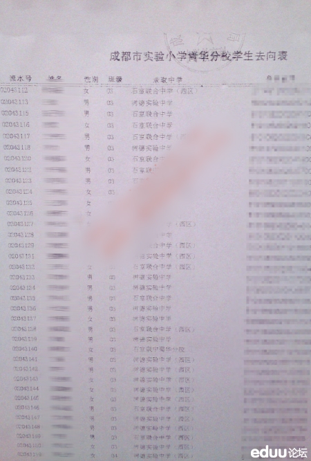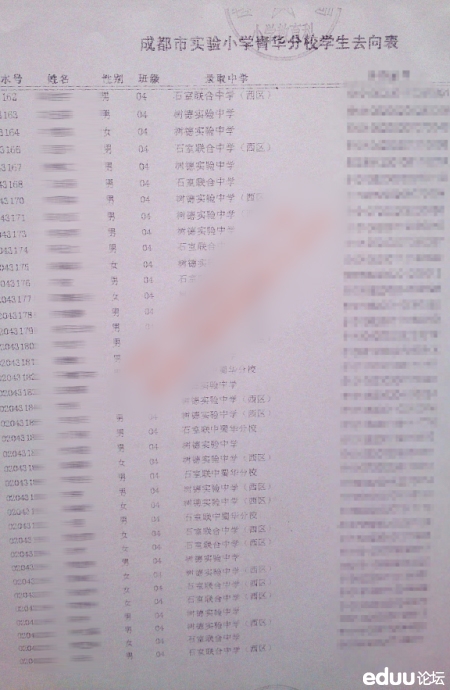 【查看原帖并讨论:青羊区重点【成都实验小学菁华分校】2014年毕业生摇号去向】