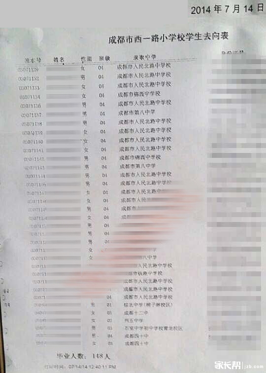 【查看论坛原帖并参与讨论: 2014年金牛区《西一路小学》毕业生摇号去向情况】