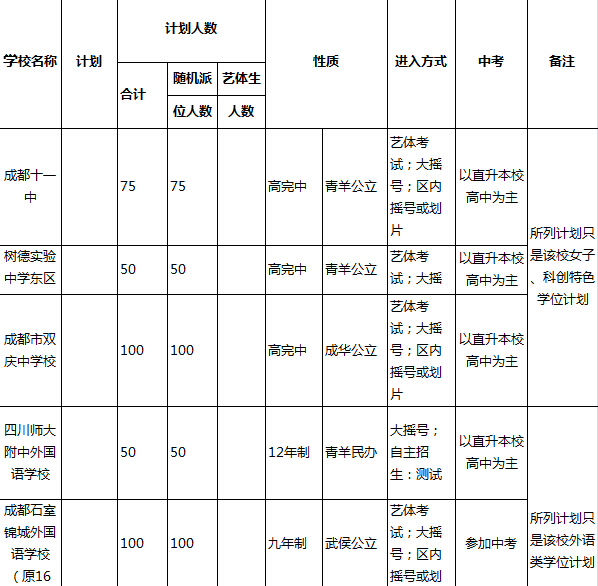 成都十一中:重视外语和音乐艺术的教育:市、区游泳重点学校。2014派位报名人数64人,录取率100%。