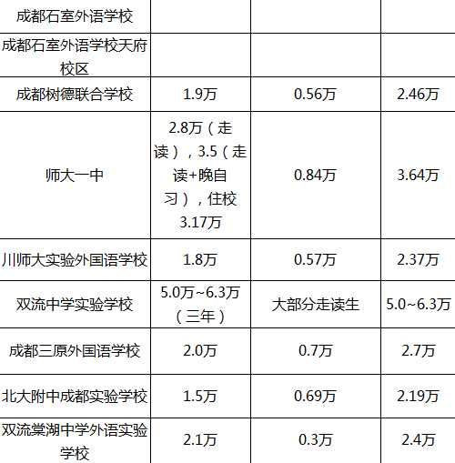 【成都私立学校学费情况汇总】