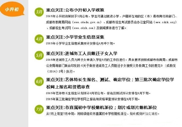 15年成都小升初招生政策将在3月份出台,根据最新动态,小升初家长“六年级张妈”与大家一起分享2015年成都小升初每月关注日历: