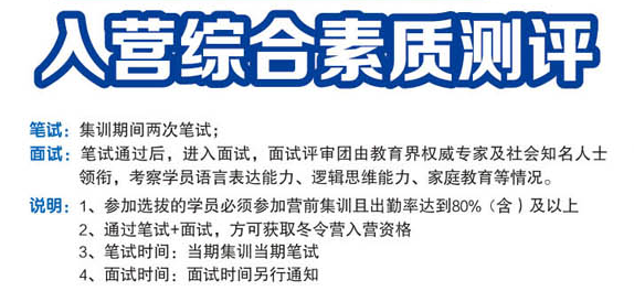 据了解,本次冬令营一共有三部:参加嘉祥九思的营前集训班——参加考试(官方称:入营综合素质测评)——参加冬令营。