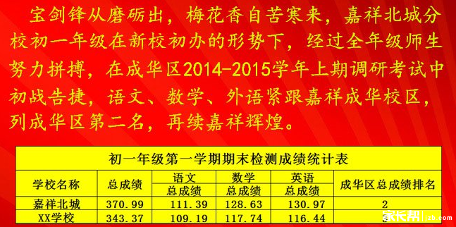 要说今年家长关注的学校,的确出现了几匹黑马。那么,有着嘉祥优良血统的嘉祥北城自然能算一个。2014年9月,嘉祥北城分校正式招生,这么短的时间,我想成绩更能说明问题。让我们一起看看嘉祥北城的成绩吧!