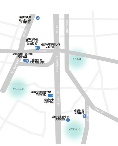 名校集中入驻天府新区。根据协议,签约双方将共建成都七中天府校区、成都石室天府新区学校、成都树德天府学校。这标志着成都四七九中天府校区建设进入实质阶段。