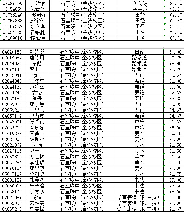 石室联中金沙校区15小升初特长生录取名单