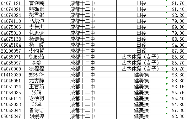 成都各公办初中2015小升初特长生录取名单公布了,下面是成都十二中2015年小升初艺体特长生录取名单,供参考。
