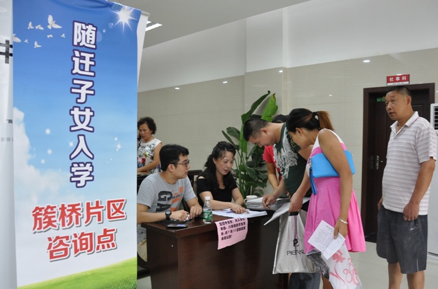 2015年7月13日是成都武侯区随迁子女小学入学名单公布的第一天,为方便群众咨询,武侯区教育局和相关街道办事处于7月13日-17日在随迁子女学位安排热点和集中区域的金花桥、簇桥、簇锦、双楠和机投五个街道办事处设立入学咨询点,由区教育局和街道办安排工作人员在现场为家长进行入学咨询服务,为群众答疑解惑。现场工作人员热情周到,解说细致,前来咨询的家长大都表示理解,支持学位安排。此次咨询服务工作将持续一周,确保2015年武侯区随迁子女入学工作顺利完成。