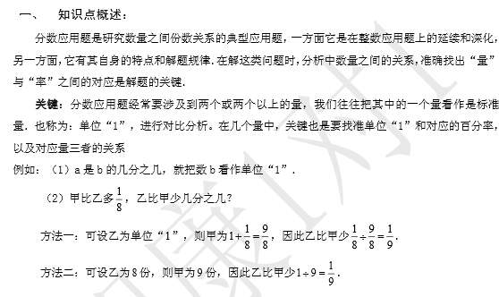 2015暑假小升初数学练习——分数百分数
