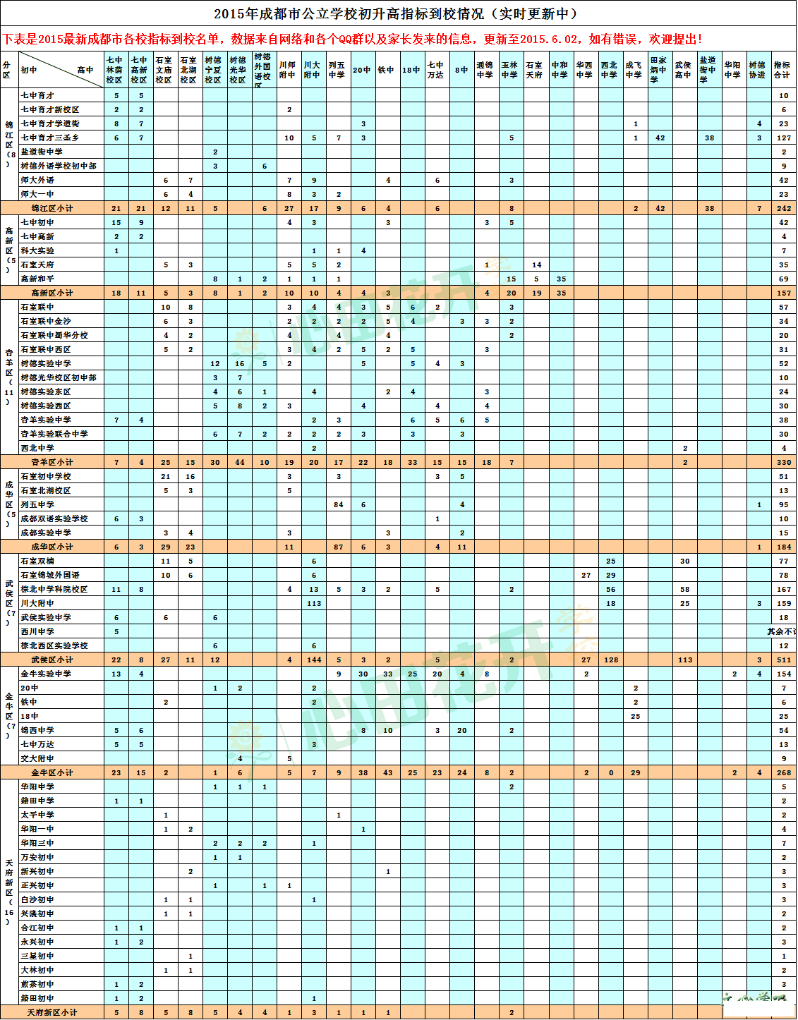 2015年成都市公立初中学校初升高指标到校情况汇总出来了,下面分享如下,供成都小升初择校家长参考。