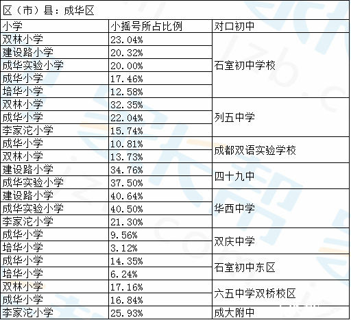 锦江区2015小升初第四批次摇号小学进入对口初中比例汇总