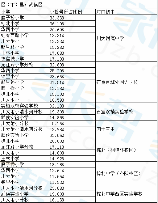 武侯区2015小升初第四批次摇号小学进入对口初中比例汇总