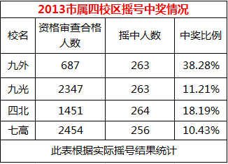 3、2013、2014年成都市属四校资格审查结果及摇号中奖比例。