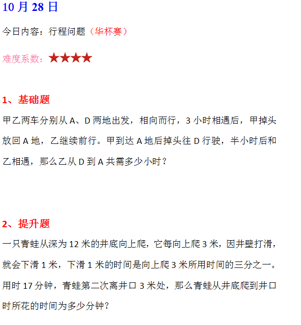 2016成都杯赛备战练习题:行程问题