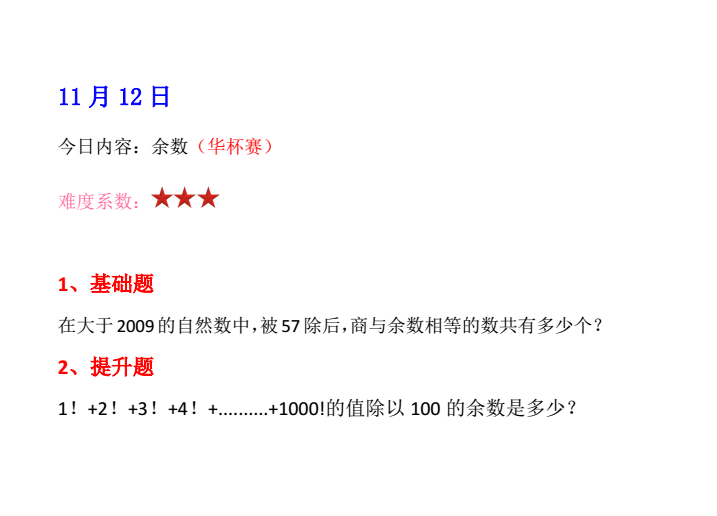 2016成都杯赛备战练习题:余数问题