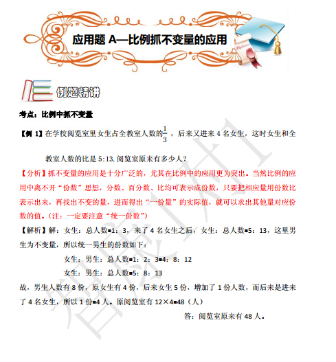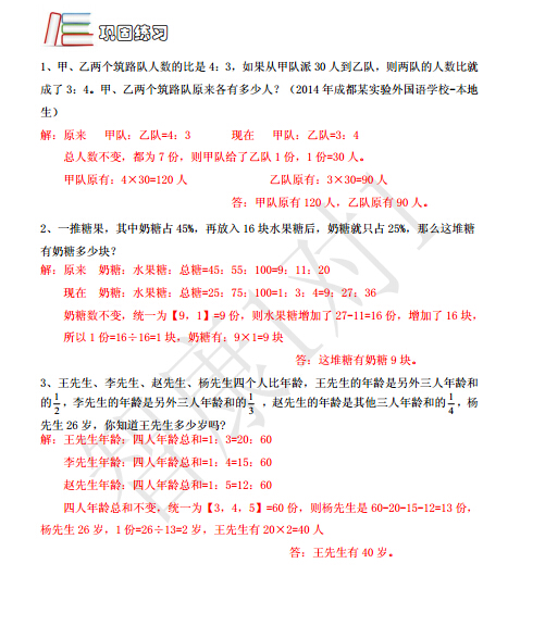 2016成都小升初考点例题:比例抓不变量应用(2)