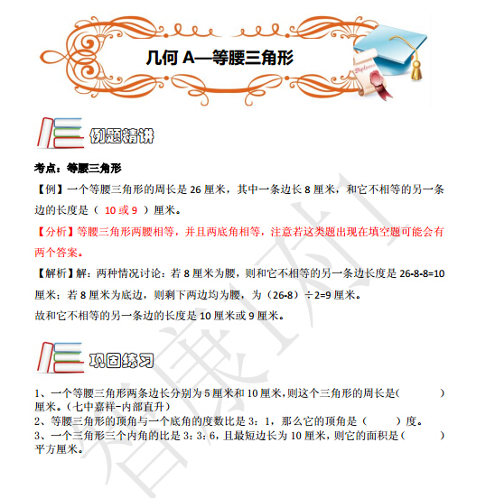 2016成都小升初考点例题精讲:等腰三角形