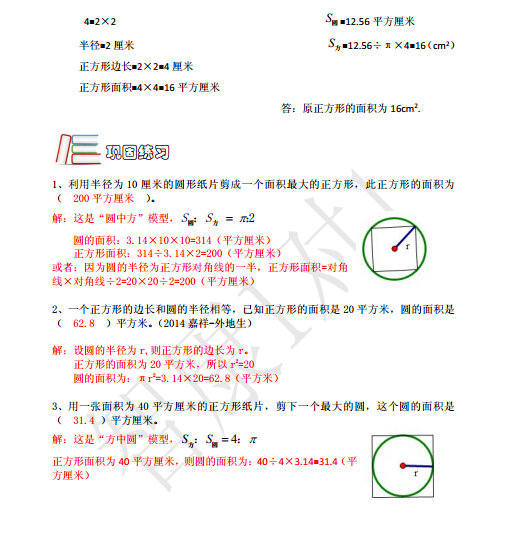 2016成都小升初考点例题:方中圆,圆中方(2)