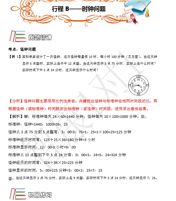 2016成都小升初考点例题精讲:怪钟问题(2)