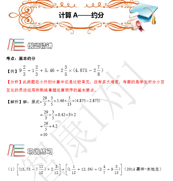 2016成都小升初考点例题精讲:基本约分
