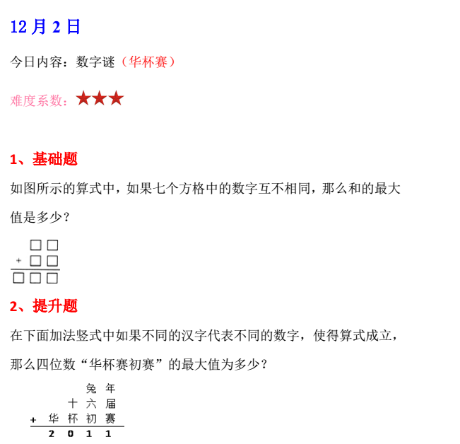 暑假结束,新六年级孩子的2016成都小升初备考之旅也即将正式开始。下面新六年级的小升初新生们就和杨老师(杨春艳)一起开启2016成都小升初每日一练的备战模式吧。(PS:因华杯赛提前,10月20日开始更新的每日一练,将以历年华杯赛竞赛真题为主)