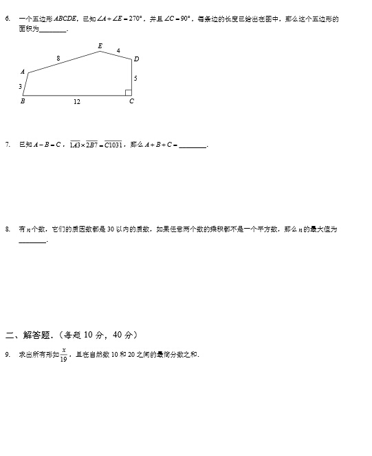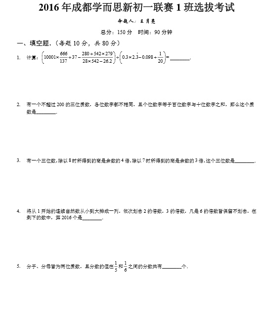 2016成都新初一联赛选拔考试试题及解析