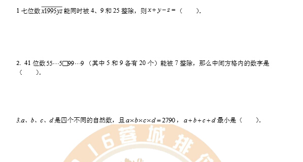 2016年成都第一届蓉城小升初排位赛是六年级学生的大型综合水平评定考试,公平、公正、公开全面评估和记录学生的学习成长历程。我要全五星! 学习,就要这么任性!蓉排赛报名已经开始,蓉城排位赛题型参考历届小升初考试以及国奥赛考试内容及其重点,为了帮助大家备战蓉排赛,从今日开始,每日更新 三道小升初难度的题目,每日复习一个知识点!备战小升初,从点滴做起!加油!