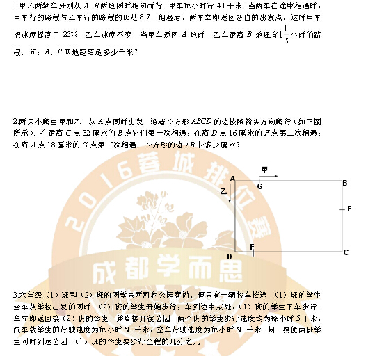 2016年成都第一届蓉城小升初排位赛是六年级学生的大型综合水平评定考试,公平、公正、公开全面评估和记录学生的学习成长历程。我要全五星! 学习,就要这么任性!蓉排赛报名已经开始,蓉城排位赛题型参考历届小升初考试以及国奥赛考试内容及其重点,为了帮助大家备战蓉排赛,从今日开始,每日更新 三道小升初难度的题目,每日复习一个知识点!备战小升初,从点滴做起!加油!