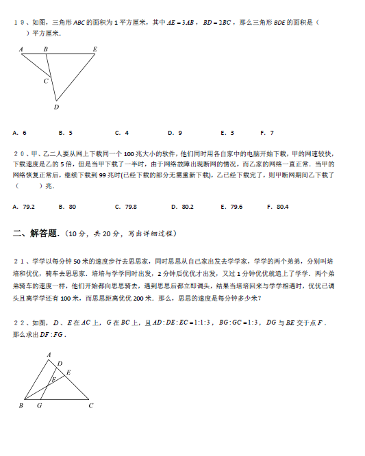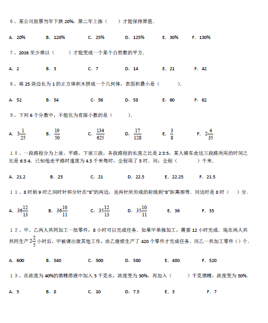 成都学而思在5月22日进行了2016年成都私立学校小升初本地生面谈全真模拟考试,下面小编将本次成都私立学校本地生模拟考试的数学试卷及答案分享如下,供即将开始2016成都小升初本地生面谈测试的考生参考。