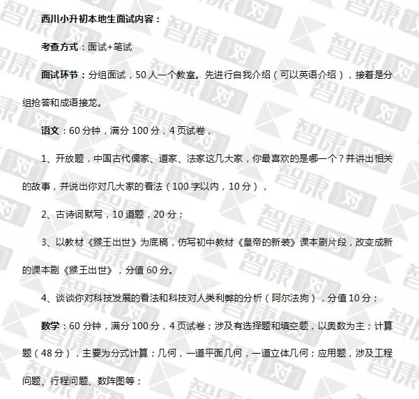 成都私立学校2016小升初招考人数及面谈内容汇总(2) 成都奥数网 2016-06-03 10:26:15 编辑推荐: 成都嘉祥外国语2016小五和小六招生网报6日开始 成都师大一中2016小升初本地生云课堂语数英真题 成都师大一中给初一新生家长们的建议 2016年中国百强中学四川仅成外和实外上榜 首页 上一页 下一页 尾页