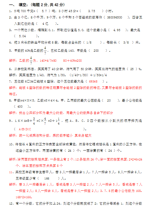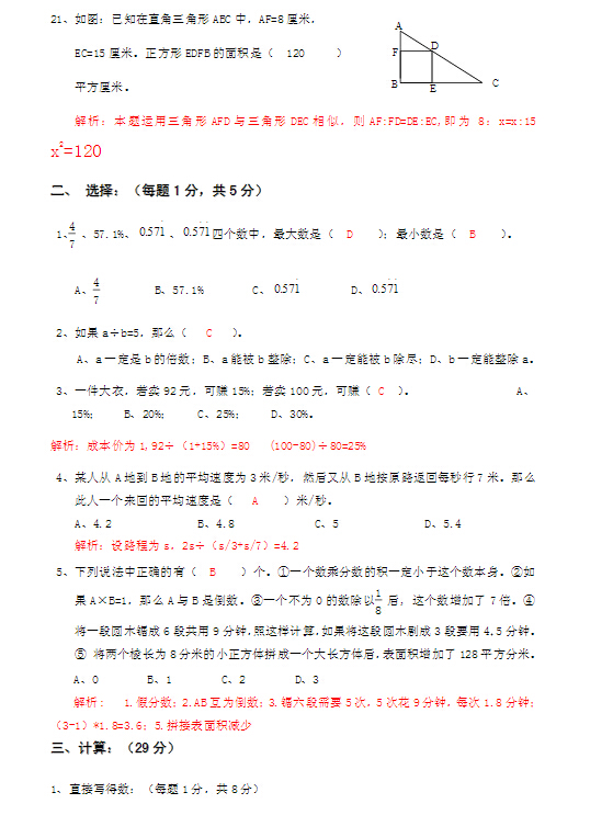 2016年6月25日成都嘉祥外国语锦江校区小学五升六考试,孩子们都准备好了吗?下面分享一下往届嘉祥锦江五升六转学生考试数学检测试题及解析,供成都嘉祥锦江2016年五升六转学生考生参考。