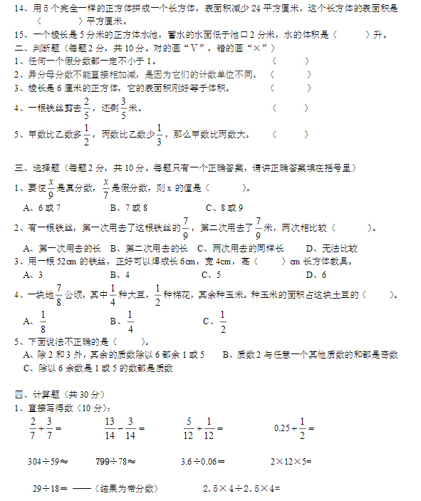 2016年6月25日成都嘉祥外国语锦江校区小学五升六考试,孩子们都准备好了吗?下面分享一下14年嘉祥锦江五升六考试数学综合试题,供成都嘉祥锦江2016年五升六转学生考生参考。
