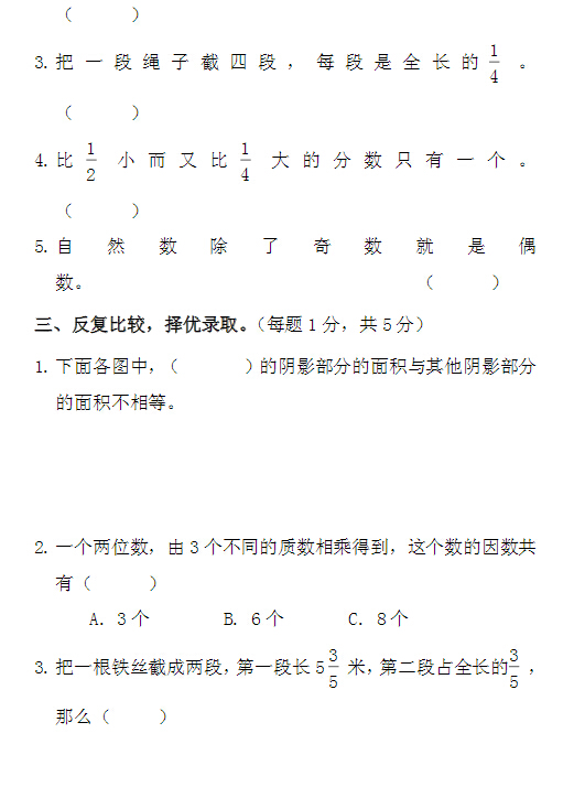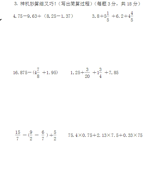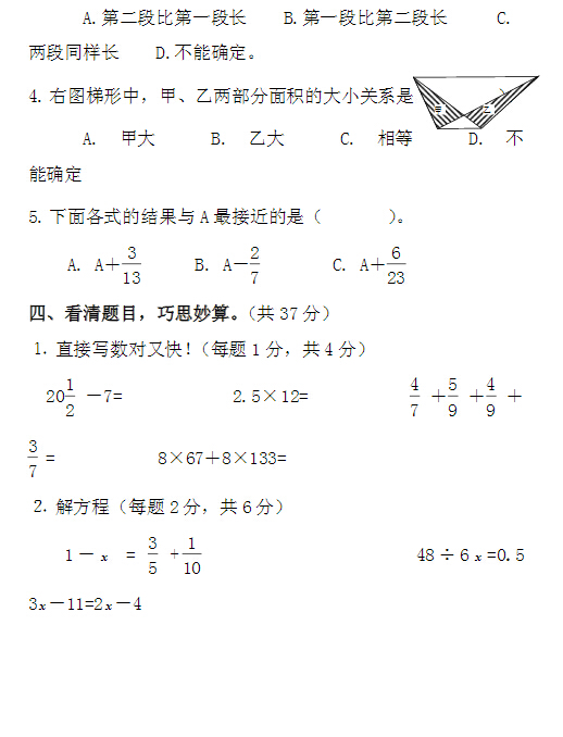 成都嘉祥锦江五升六转学考试数学测试题(2)
