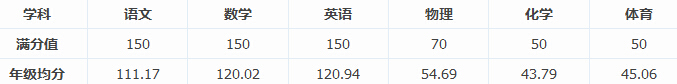 二、优生众多。我校参考学生的年级总平均分为573.96分,超过重点线3.96分。中考满分700分,600分以上262人,占参考学生总数的37.32%。