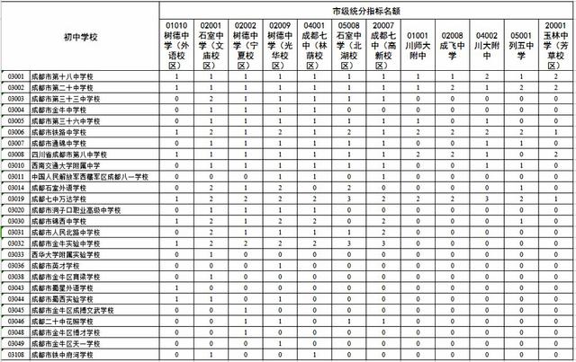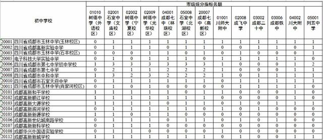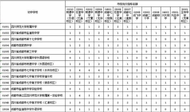 2016年成都初中指标到生名额分配情况公布(2)