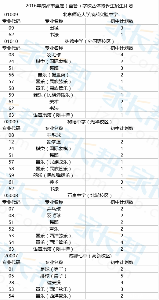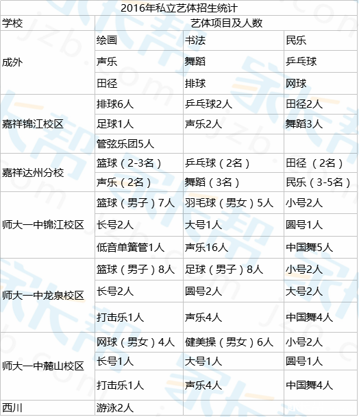 其次,我们一起来了解一下成都各初中学校艺体招生详细情况: