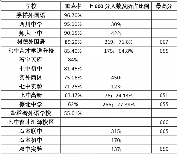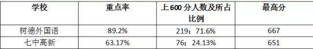 那树德外国语和七中高新今年考得怎么样呢?请看下表:
