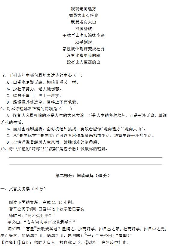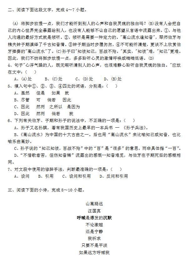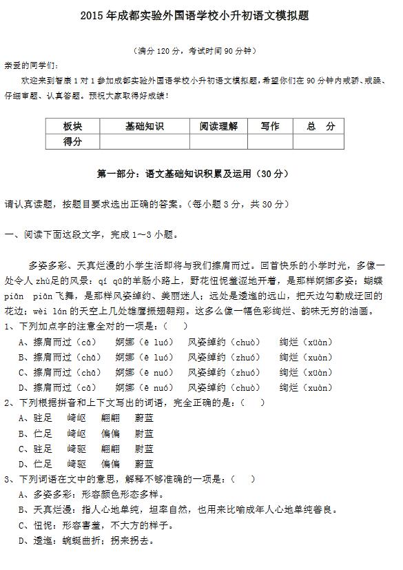 成都实验外国语学校2015年的小升初模拟考试语文试题