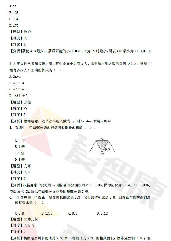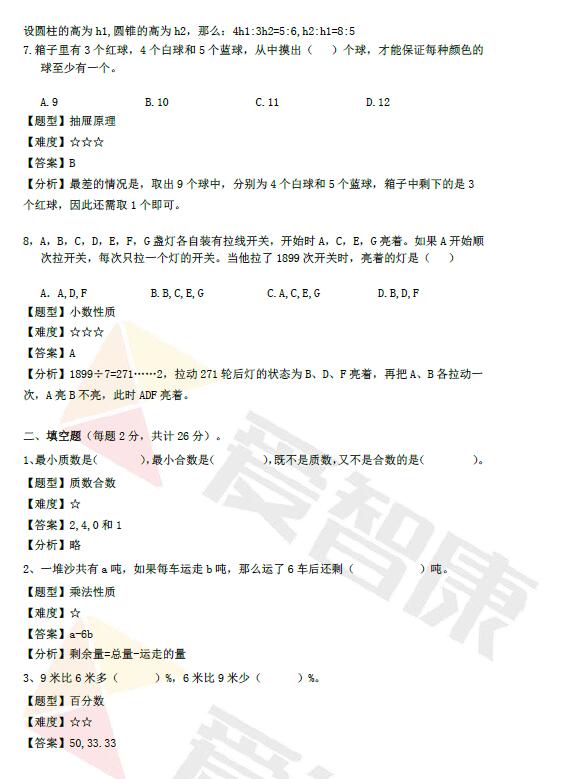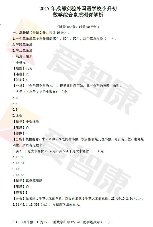 成都实外2017小升初模拟考试数学试卷答案(4)